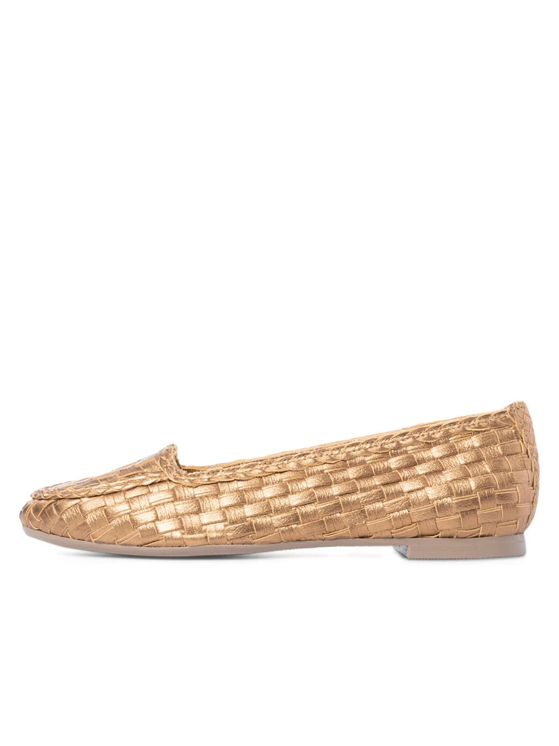 A flat woven ballet constructed entirely eco-friendly and designed by Ali MacGraw for Butter Shoes.