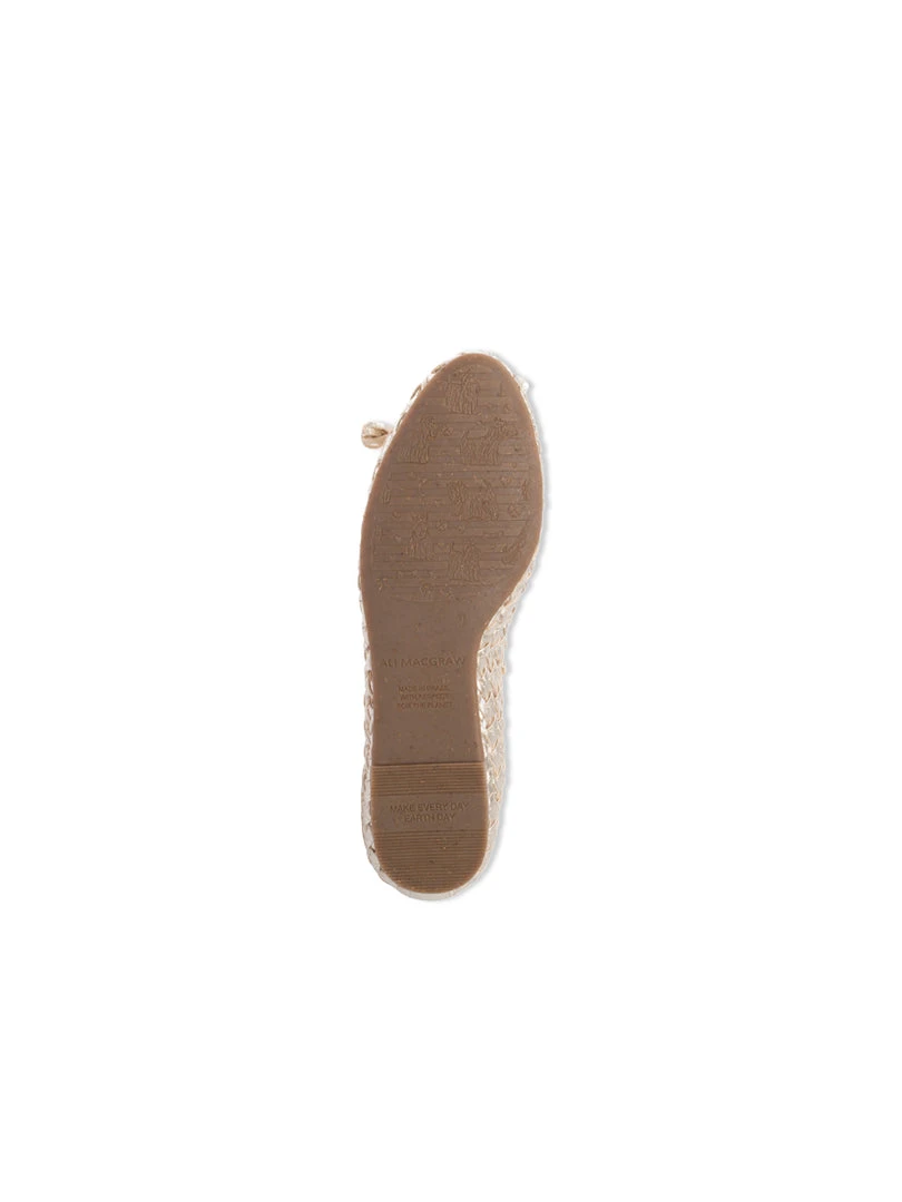 A vegan leather ballet flat, constructed entirely eco-friendly and designed by Ali MacGraw for Butter Shoes.
