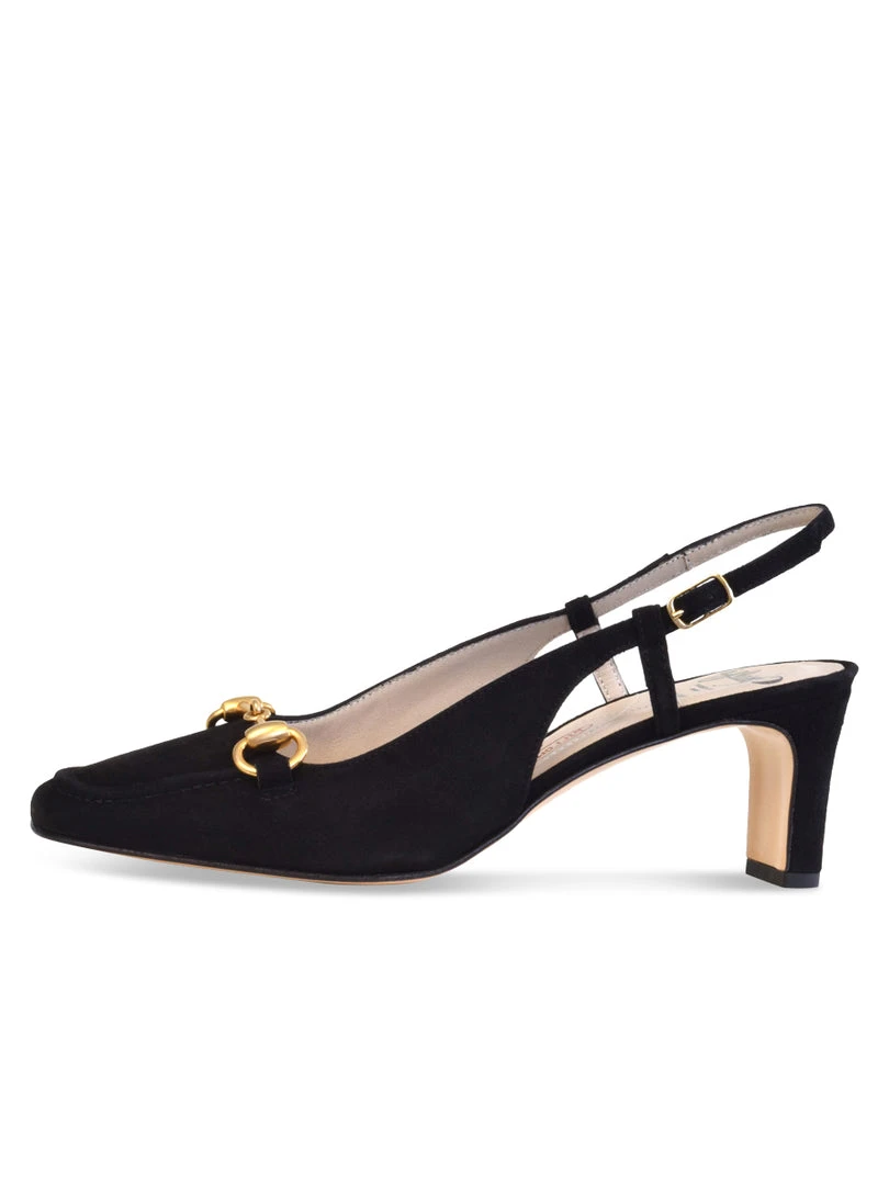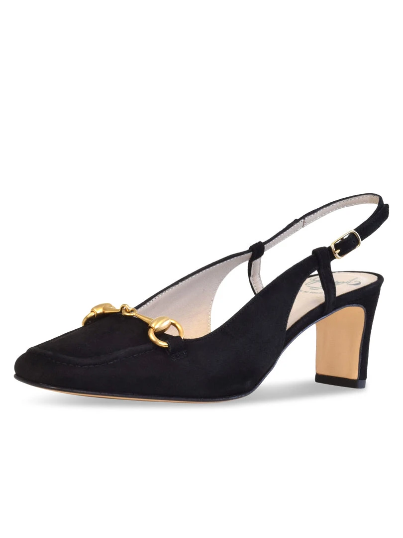 This mid heel comfort dress sling has a delicate twist on a traditional loafer style. These loafer heel slingbacks as comfortable as they are elegant. The Amalfi by Rangoni collection is designed by generations of Italian shoemakers that have been handcrafting Italian footwear since 1937. The quality and craftsmanship is unparalleled.Â