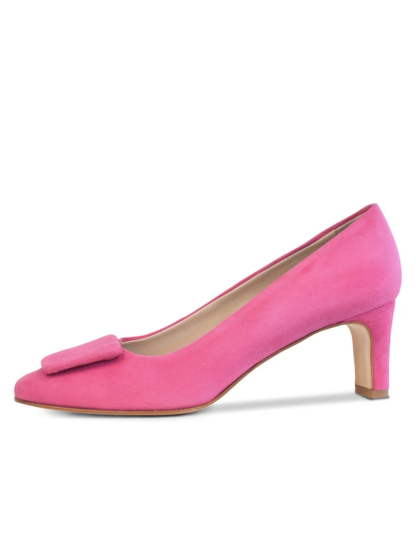 A classic mid heel comfort dress pump with a pendant detail. Soft insoles makes these suede pumps extra luxurious. The Amalfi by Rangoni collection is designed by generations of Italian shoemakers that have been handcrafting Italian footwear since 1937. The quality and craftsmanship is unparalleled.