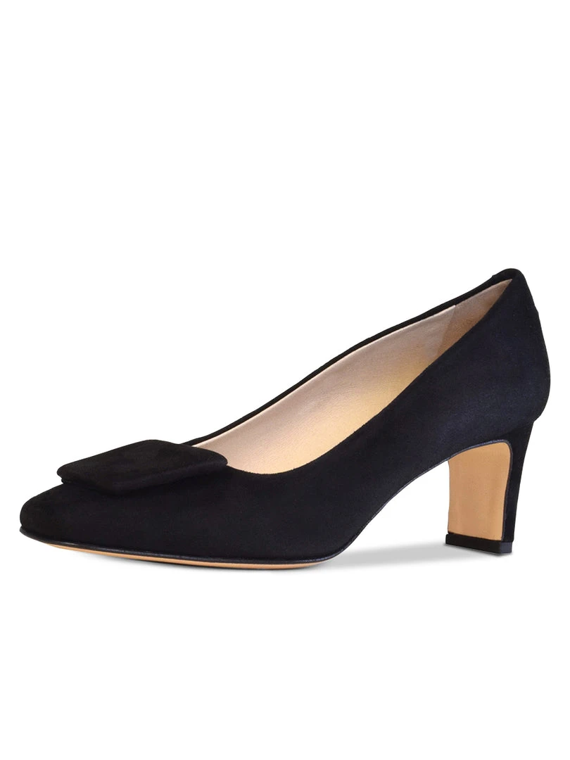 A classic mid heel comfort dress pump with a pendant detail. Soft insoles makes these suede pumps extra luxurious. The Amalfi by Rangoni collection is designed by generations of Italian shoemakers that have been handcrafting Italian footwear since 1937. The quality and craftsmanship is unparalleled.