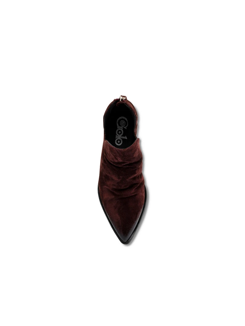 Rustic yet sleek booties for any occasion. The scrunch detail on these pointed toe short suede boots makes these casual yet sophisticated.Â