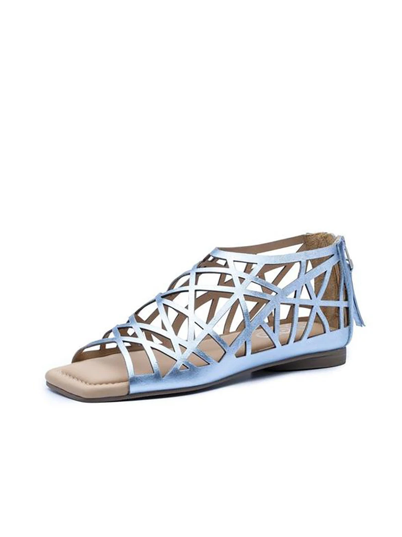 This style is a real stunner! A full piece of leather is laser-cut into a geometric pattern that is just as much a piece of art as it is a new look in a sandal.Â