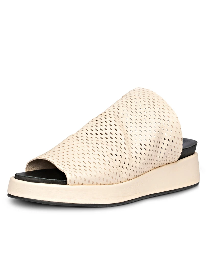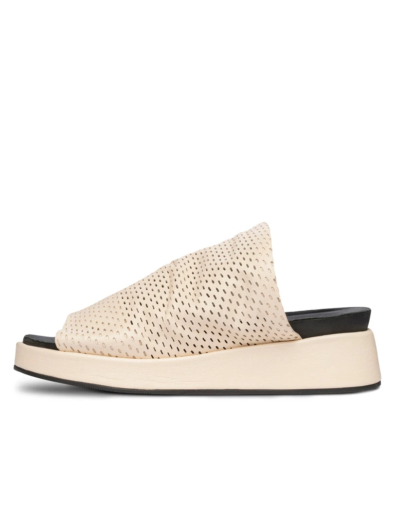 Platform wedge sandals are both modern and sporty. This perforated leather slide perfectly combines comfort and style.Â