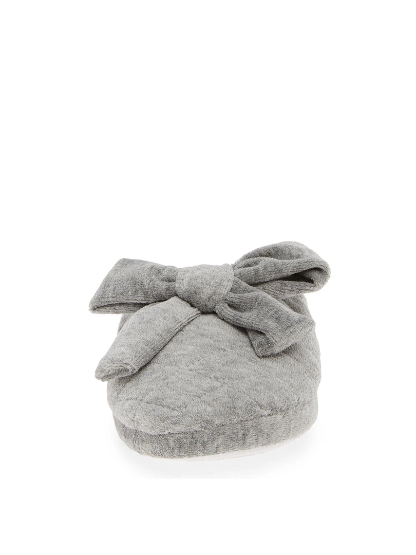 Plush, cozy slippers topped with knotted bows feature a super cushy footbed for wonderful around-the-house comfort.