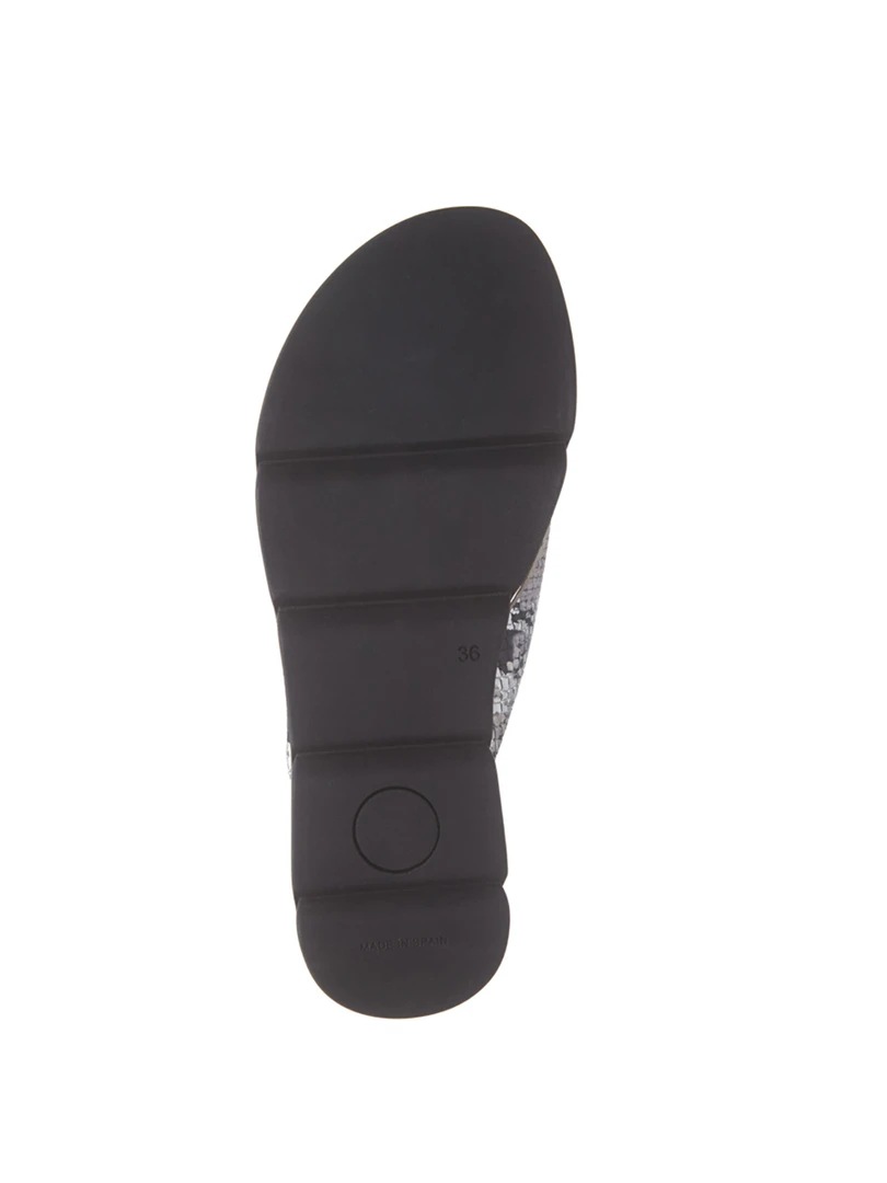 The perfect everyday slip-on thong sandal with leather straps and a treaded platform rubber sole.