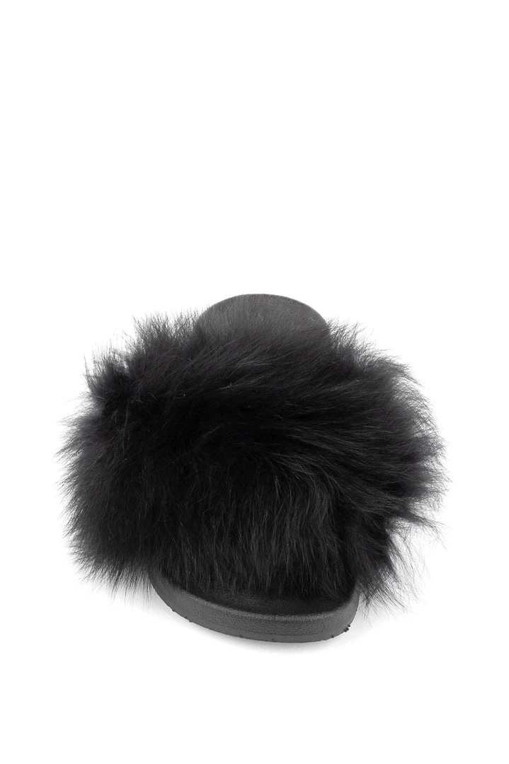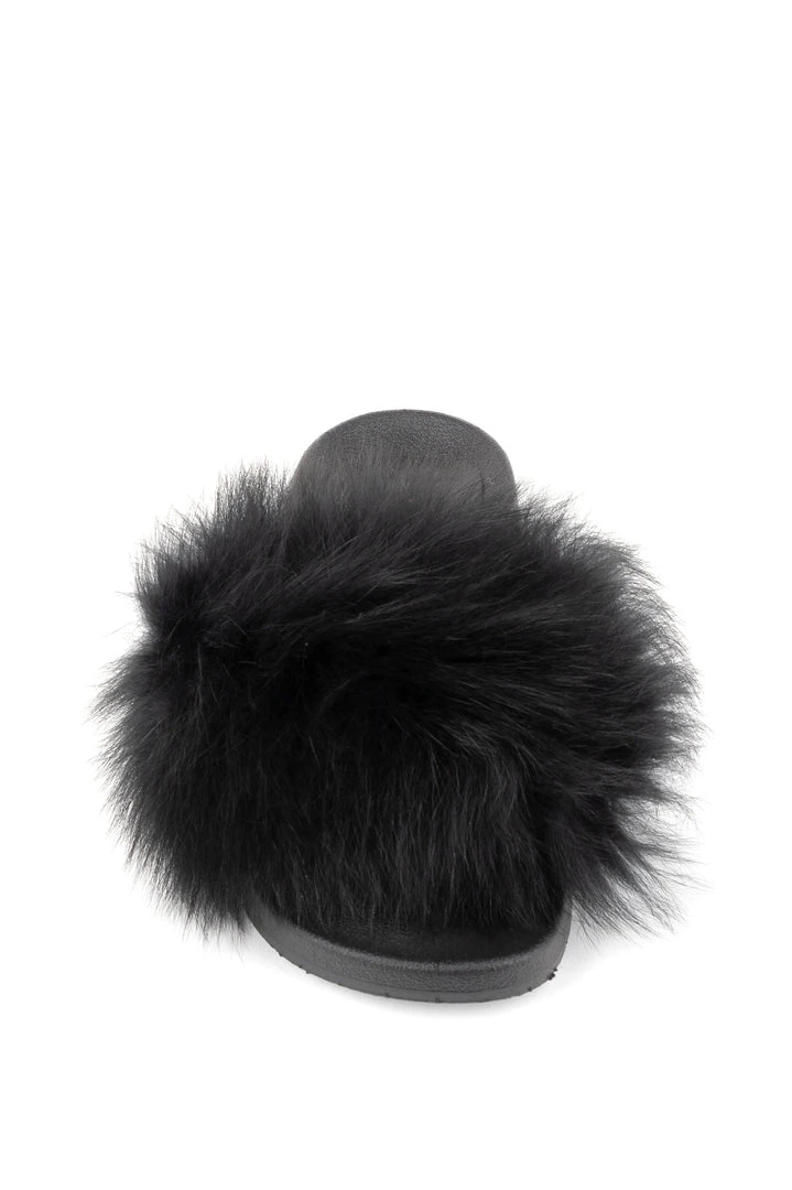 Lavish genuine fox fur shifts and sways atop a luxe slipper fashioned with a comfy molded footbed.