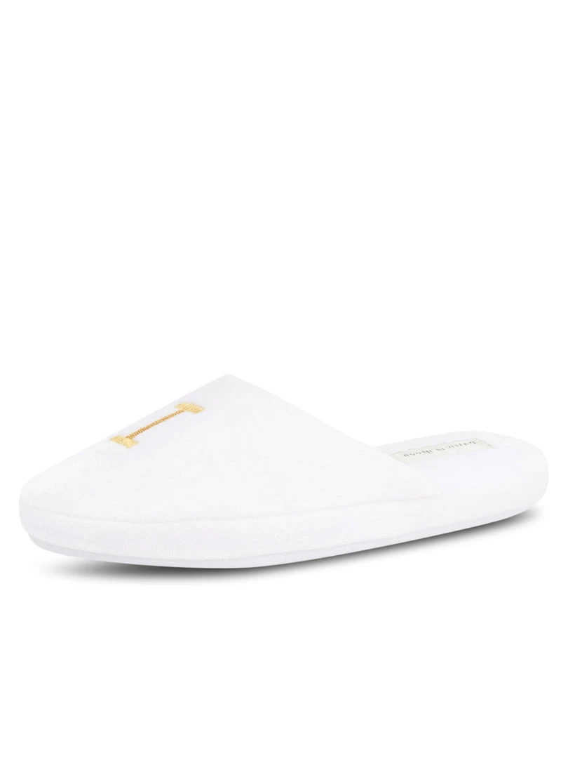 Calling all brides! We’ve designed the perfect slipper for getting ready on your big day, relaxing on your honeymoon, or engagement gift. Gold embroidered “I DO”.