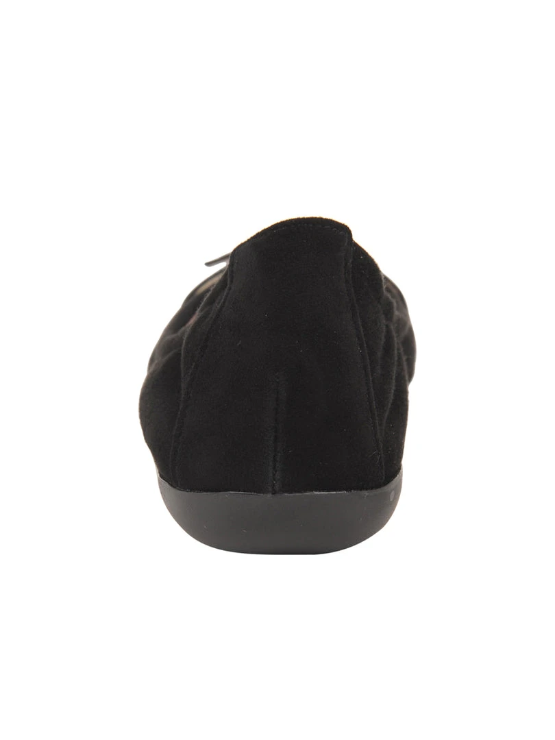 A rich suede ballet flat atop our flexible rubber sole for a dressier look with everyday comfort. A buckle detailing finishes the toe for a pulled together look. Finished with an elasticized back of the shoe for a comfortable, secure fit.