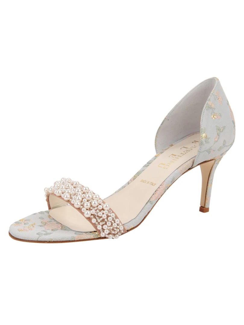 Encrusted with a lustrous array of the sea’s coveted gems, Something Bleu’s satin d’orsays are timelessly elegant.