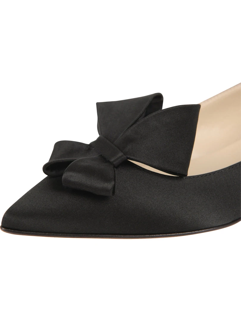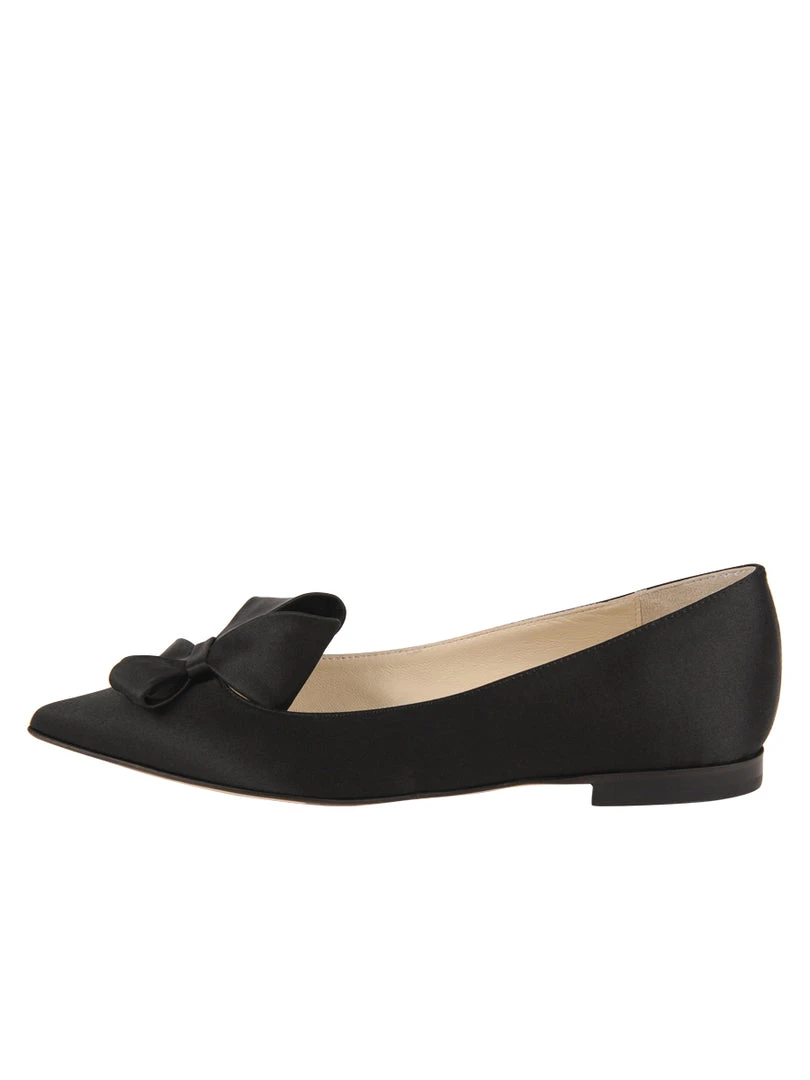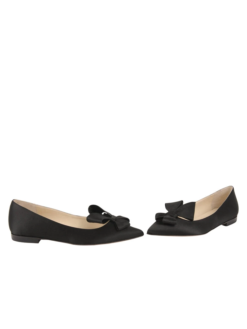 Stunning satin or suede covers these pointed toe flats. A satin Butter Bow makes these versatile and timeless.