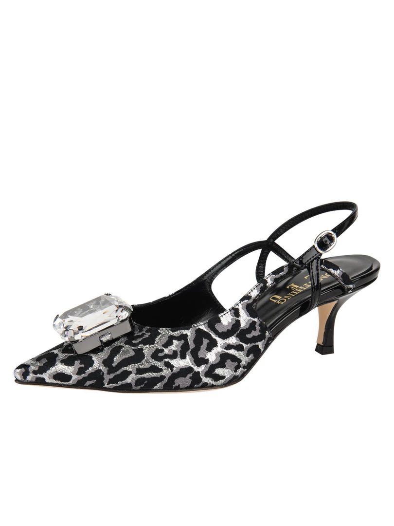 Leopard print is everything right now, and this pointed toe slingback is right on trend. With an embellished gem detail, everything about this shoe screams holiday-ready. We’re wearing these with everything from evening dresses, leather pants and denim.Â
